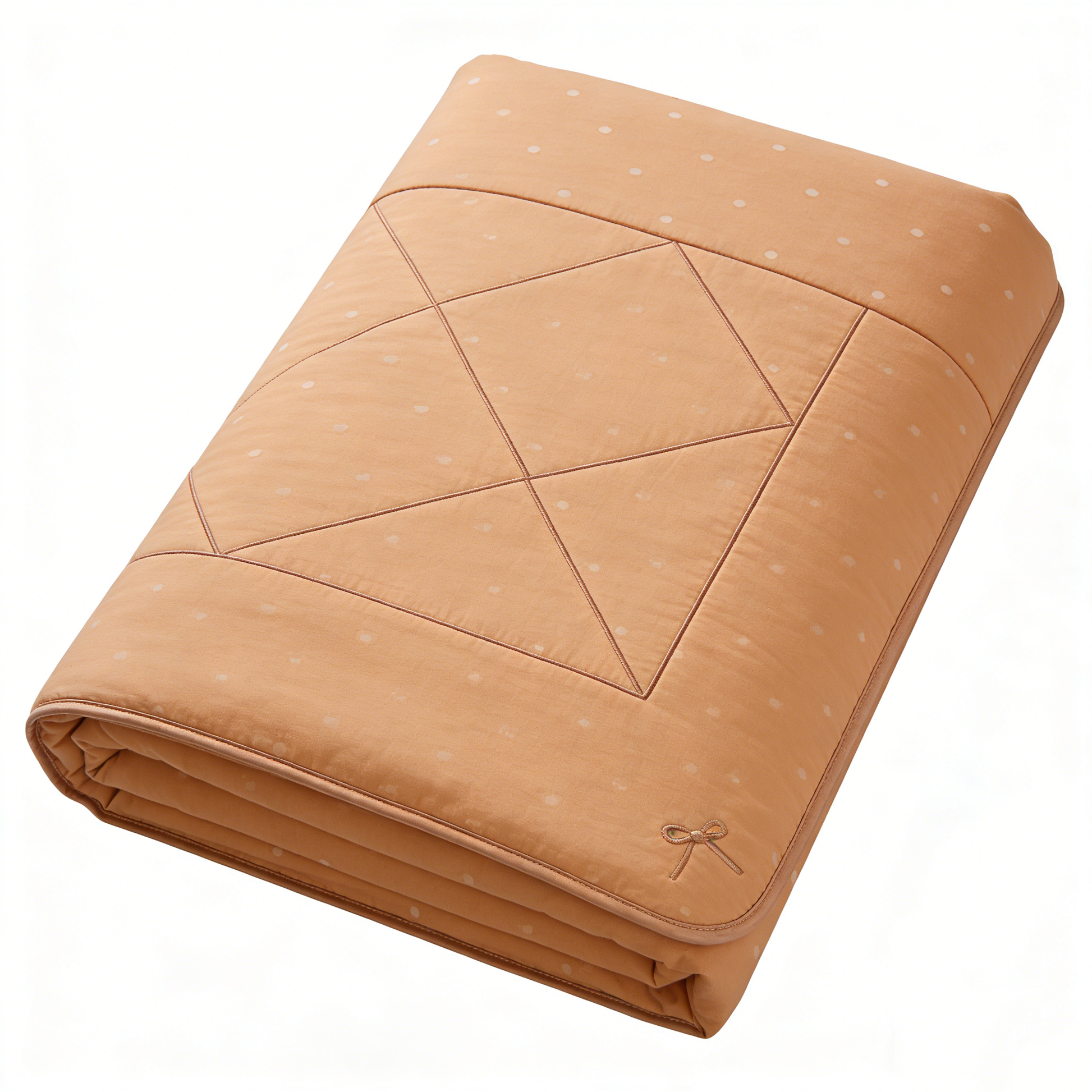Soft peach comforter with dot pattern, lightweight and smooth. Adds gentle and sweet touch to any room.